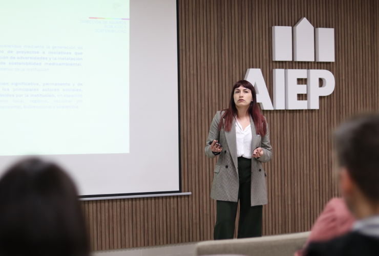 La comitiva, encabezada por la directora ejecutiva de PROhumana, Florencia Burgos, asistió a sendas exposiciones de la vicerrectora de Vinculación con el Medio y Comunicaciones de AIEP, Marcela Vaccaro, y la jefa de Sostenibilidad de AIEP, Javiera Gutiérrez, para luego iniciar un recorrido por las instalaciones de la sede.